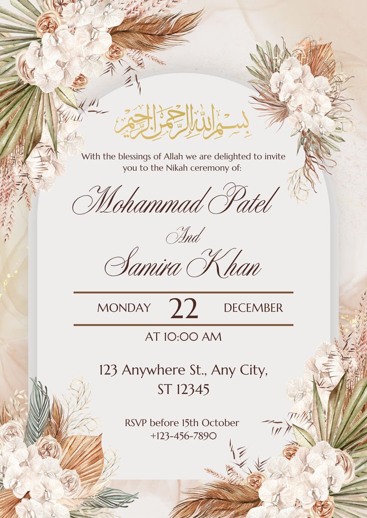Announce your special day in a beautiful and modern way with this Personalized Digital Wedding Invitation. Perfect for WhatsApp, Instagram, email, and e-cards, this design is created especially for Muslim weddings / Nikkah ceremonies with Islamic elements and elegant typography.