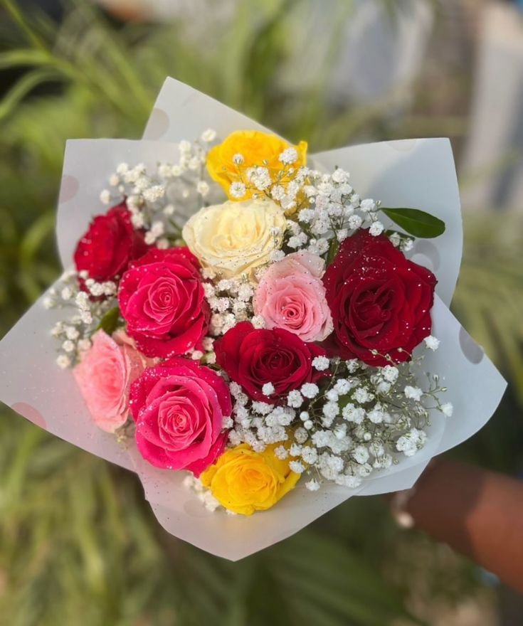 • Flowers: Assorted red, pink, yellow & white roses, baby’s breath & greenery