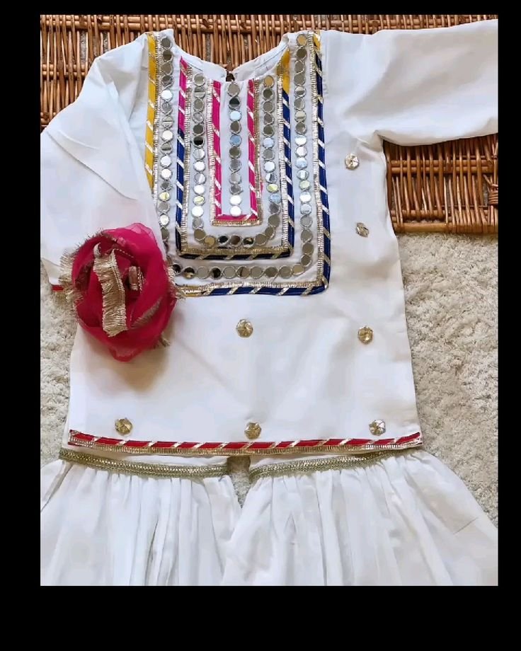 ✔ Dupatta in a bright contrasting shade with gotta finishing